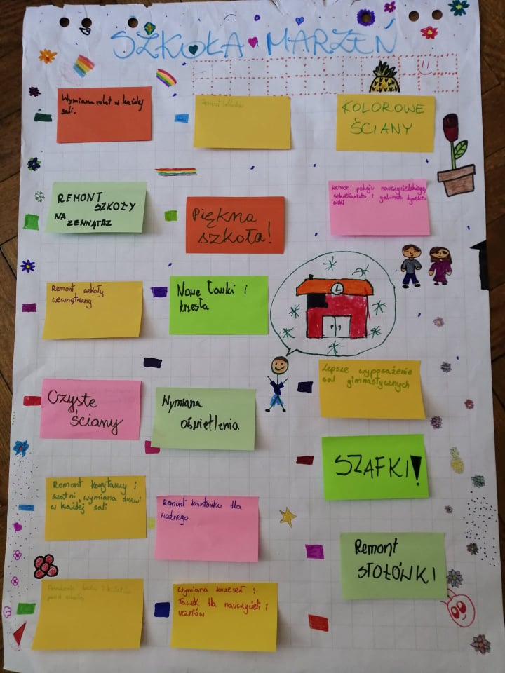 Celem projektu jest stworzenie komfortowych warunków do nauki dla uczniów oraz pracy dla nauczycieli. Otoczenie, w którym przebywają uczniowie i pracownicy szkoły ma istotny wpływ na jakość i chęć uczenia się. Pomieszczenia szkolne powinny być czyste, jasne, kolorowe i nowoczesne. Sale są wyposażone w sprzęt multimedialny, na bieżąco wzbogacana jest baza dydaktyczna. Niestety obecne warunki nie sprzyjają, zniechęcają do pracy. Budynek szkoły znajduje się w gminnej ewidencji obiektów zabytkowych, dlatego nie możemy przystąpić do projektów związanych z termomodernizacją. Budżet, który szkoła otrzymuje nie wystarcza na kompleksowe remonty, jedynie na pilne potrzeby. Społeczność szkolna chce odnowić wnętrze szkoły, aby było piękne i przyjazne.