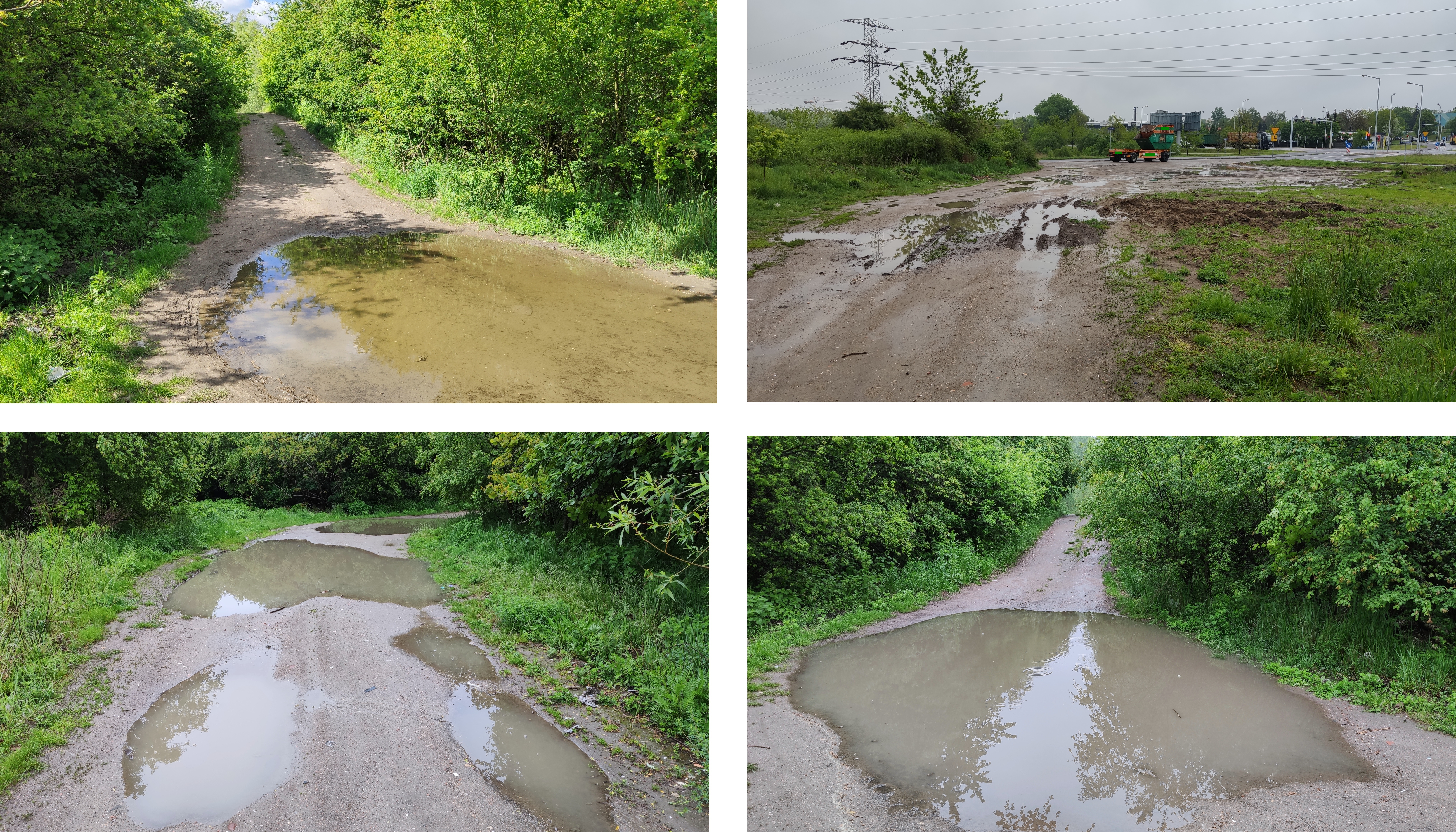 Sądząc po ilości pozostawianych tam śladów butów i kół sporo osób korzysta z wspomnianego wejścia. Jednak w momencie większej ilości opadów, w miejscu tym powstają olbrzymie kałuże i błoto. Trudno jest przejść, a co dopiero przejechać rowerem czy też wózkiem. Brakujący odcinek w przybliżeniu to zaledwie 140 m, jednakże brak utwardzonej nawierzchni w tym miejscu bardzo utrudnia dojście na Wartostradę.