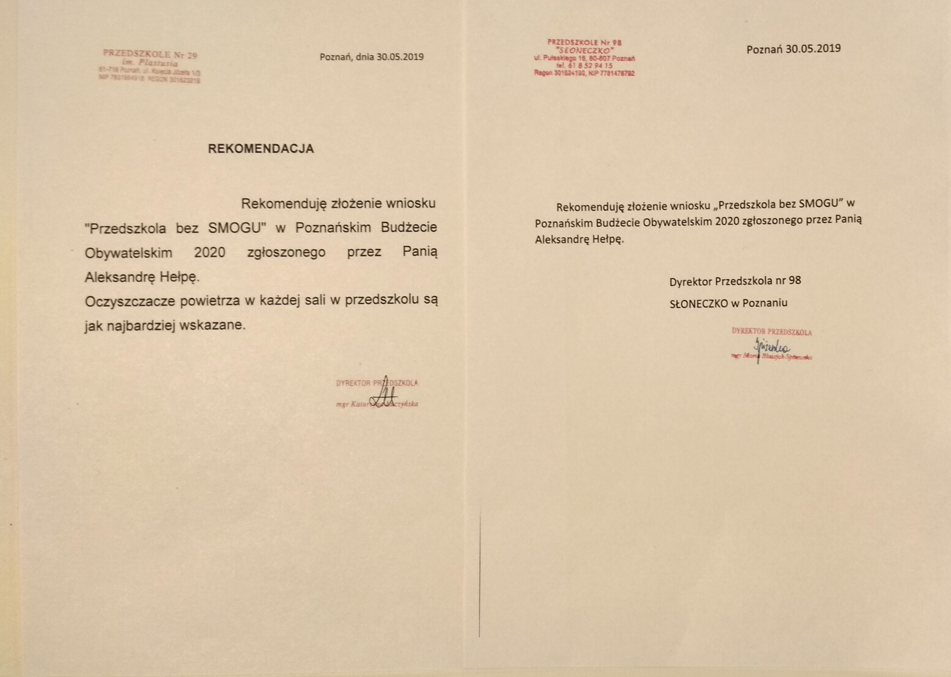 Chcemy, aby powietrze jakie wdychają nasze dzieci przez większość dnia (8-9 godzin dziennie) było jak najczystsze.