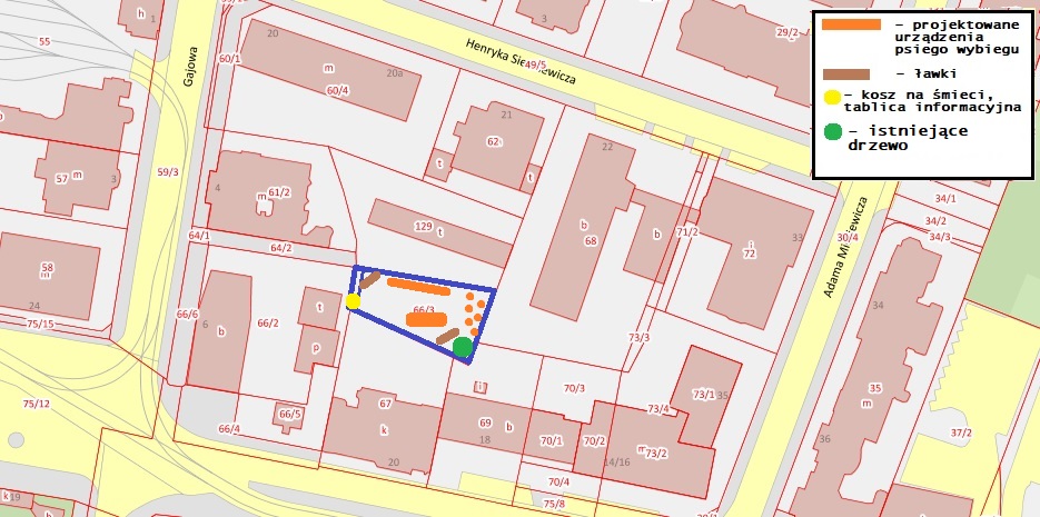 Uzasadnienie Przedstawiony projekt zlokalizowano na terenie zespołów urbanistyczno-architektonicznych wpisanych do rejestru zabytków pod nr A 239 decyzją z dnia 06.10.1982 r. Lokalizacja wybiegów wraz z urządzeniami w oparciu o opinię Miejskiego Konserwatora Zabytków nie jest możliwa, ze względu na bliskość znajdujących się w pobliżu obiektów zabytkowych. Na przedmiotowych działkach nie ma możliwości stawiania na nich obiektów kubaturowych jak i usuwania zieleni wysokiej. Ponadto w odniesieniu do działki nr 66/3 prowadzone jest postępowanie w stosunku do nieruchomości miejskiej. Natomiast w odniesieniu do działki przy ul. Jeżyckiej, działka dodatkowo nie spełnia wytycznych Zespołu zadaniowego koordynującego Program Miejski „Kejter też Poznaniak” dotyczących zakładania wybiegów w Poznaniu, ponieważ minimalna powierzchnia wybiegu powinna mieć 0,25 ha